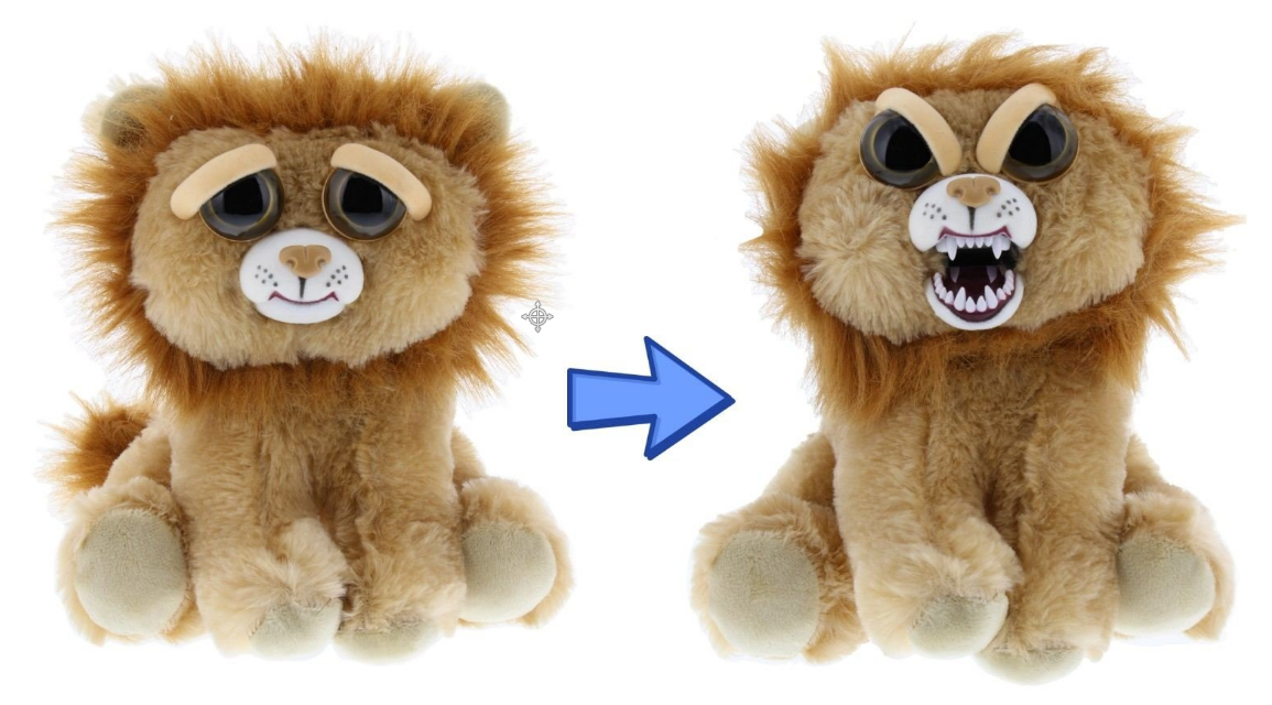 Verwandle dein süßes und unschuldig aussehendes Plüschtier in ein böses temperamentvolles Haustier, indem du es ein wenig hinter die Ohren drückst.